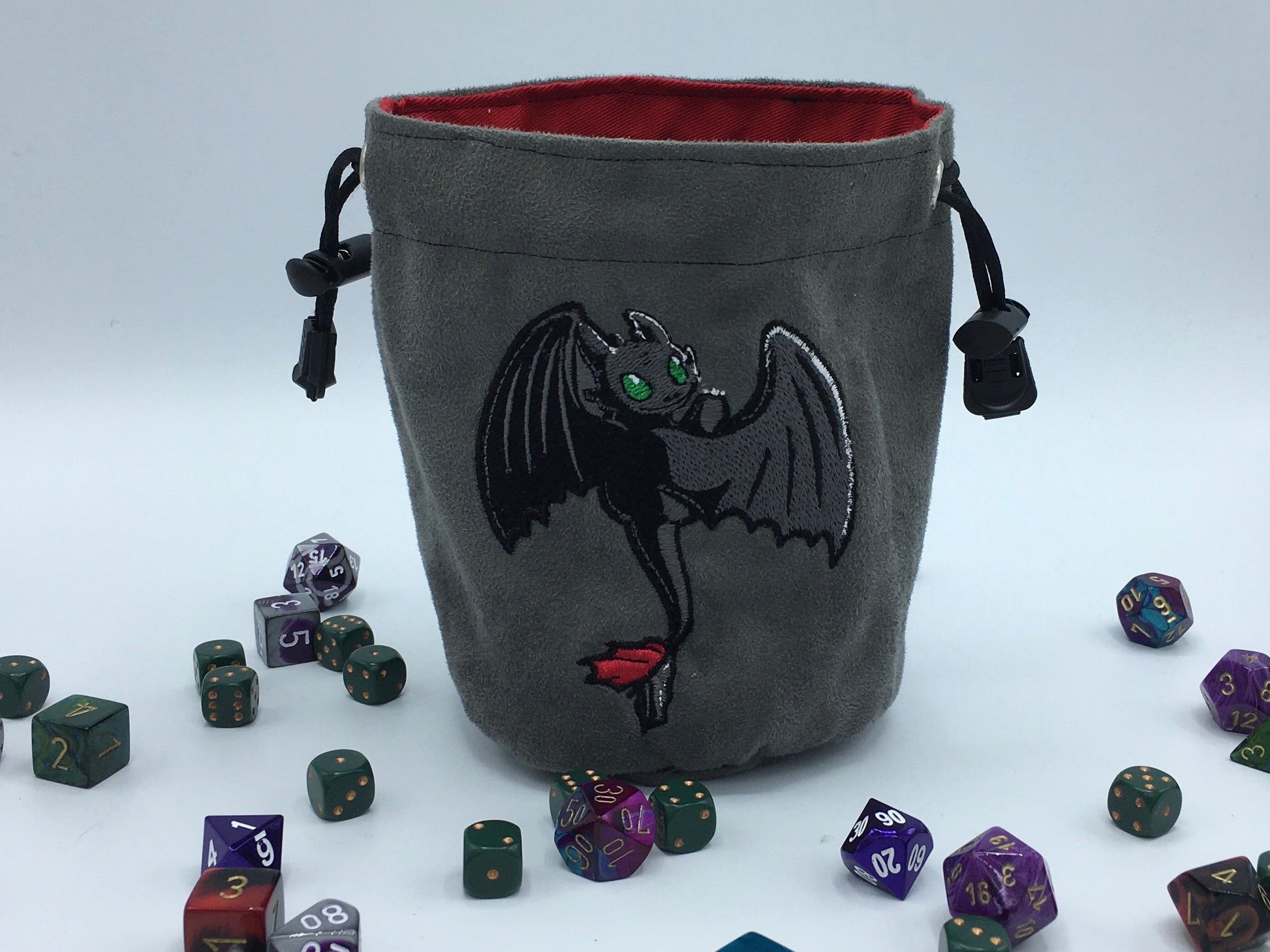 Unleash your inner dragon with the Toothless Embroidered Dice Bag! Handmade and full of charm, this playful pouch is perfect for stashing your dice during Magic the Gathering, Warhammer, or D&D sessions. Compact and sturdy, it keeps your dice ready for every quest, adding a fun, whimsical touch to your gaming gear. Let your adventures take flight!