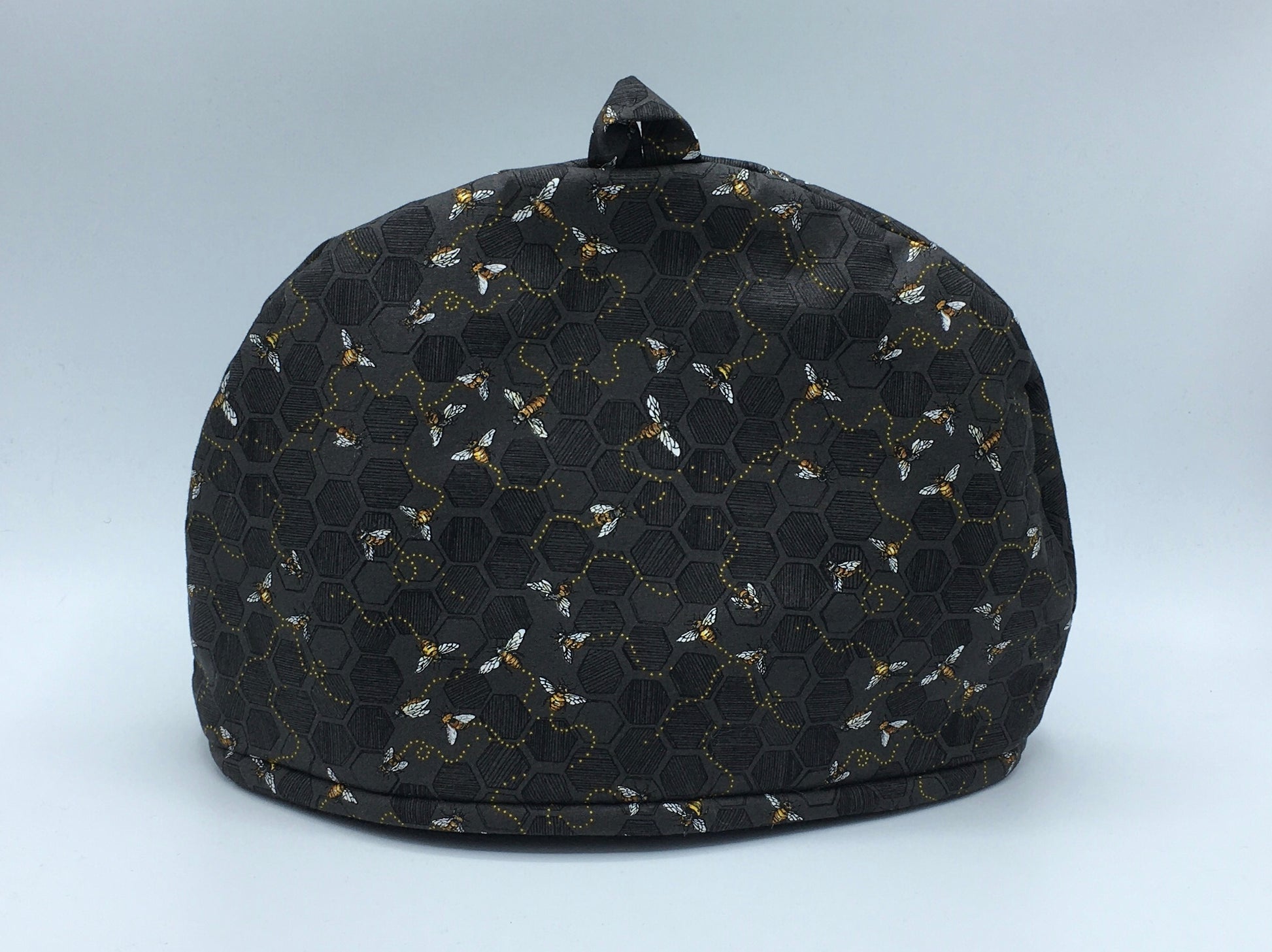 "Wrap your favorite teapot in luxury with our Honey Bees Tea Cozy. Made with heat reflective fabric, it keeps your tea warm while paying homage to the industrious honey bee. Embrace the warmth and comfort of a hive with every cup."