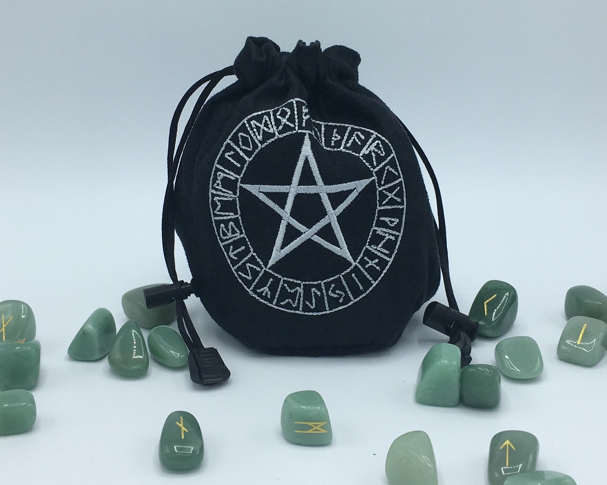 Keep your rune tiles safe and stylish with the Pentacle Runes Embroidered Rune Bag. Designed for both gaming and Pagan divination, this durable dice bag features a detailed pentacle embroidery, making it a meaningful accessory for your spiritual and gaming sessions. Its compact size ensures easy transport, so you can carry your divination tools wherever your journey takes you. Enhance your ritual or game with this elegant and practical rune bag.