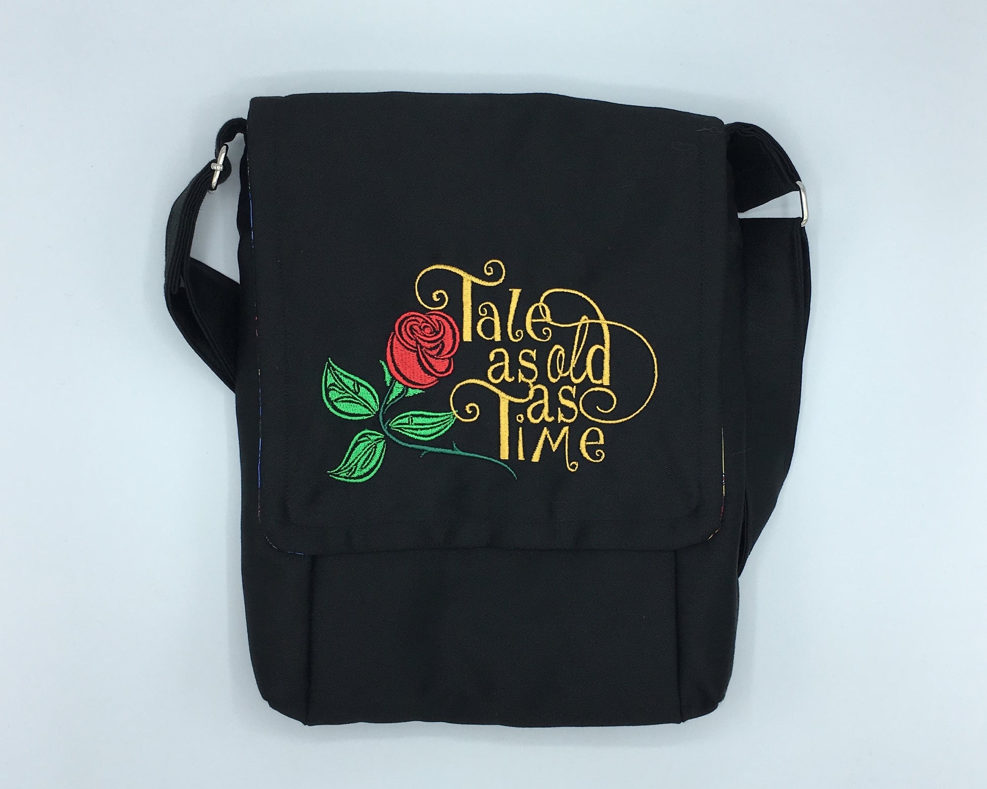 Unleash your inner princess with our Beauty and the Beast Purse! Inspired by the beloved tale, this cross body bag features multiple pockets for easy organization. Perfect for any fairy tale lover, channel your inner Belle with this chic and functional accessory.