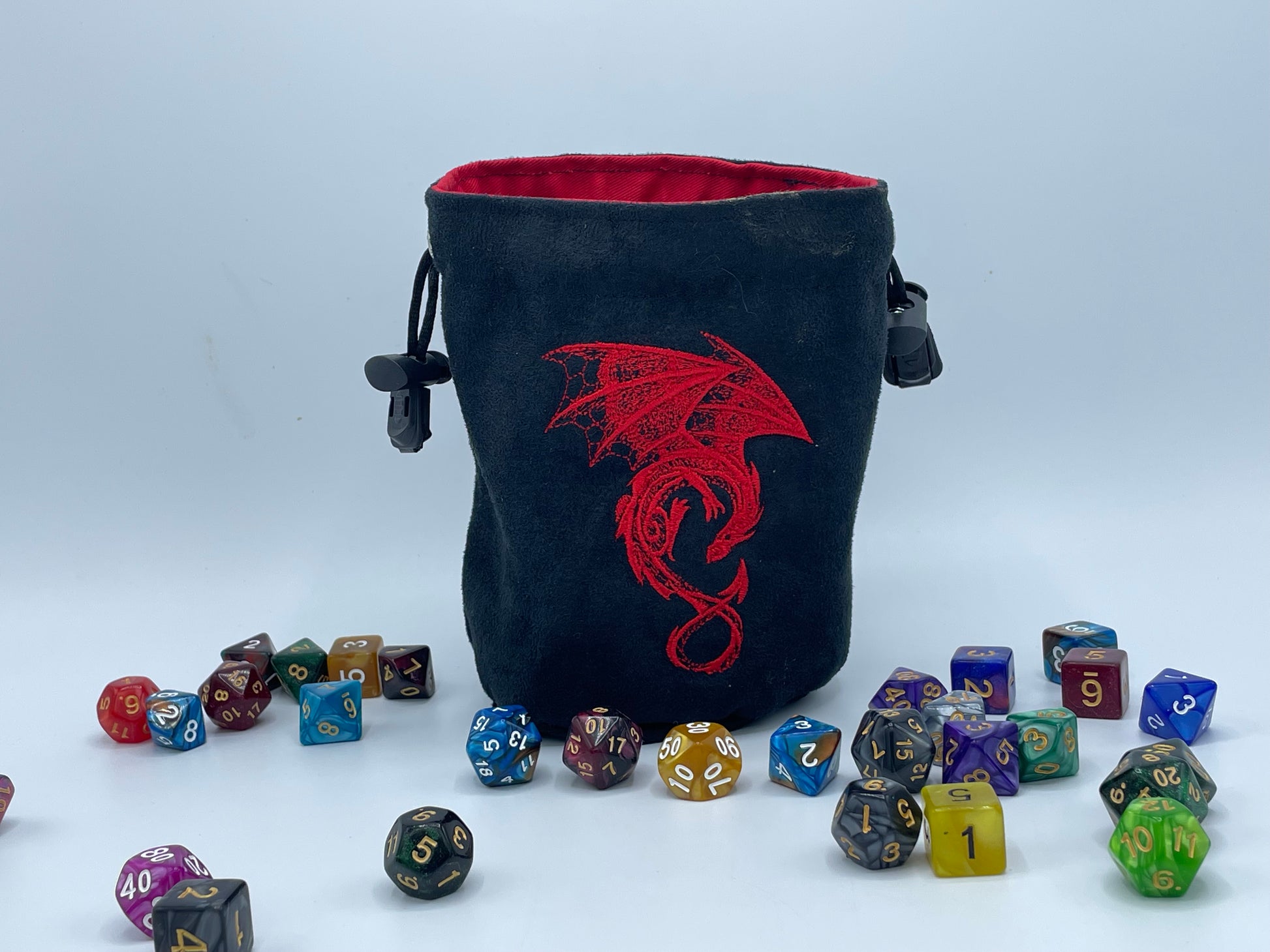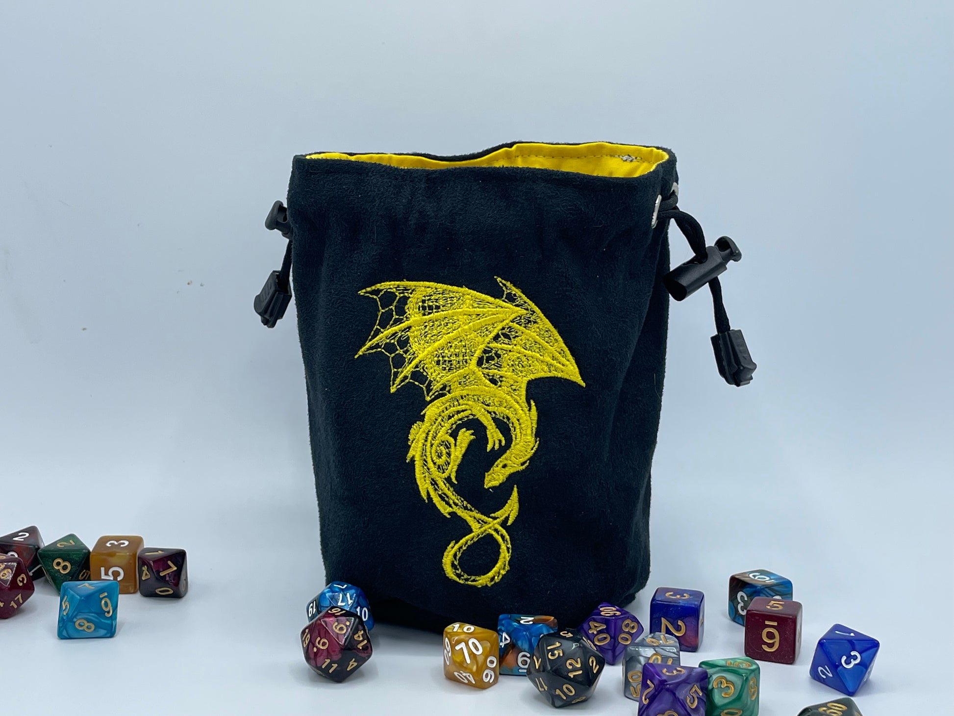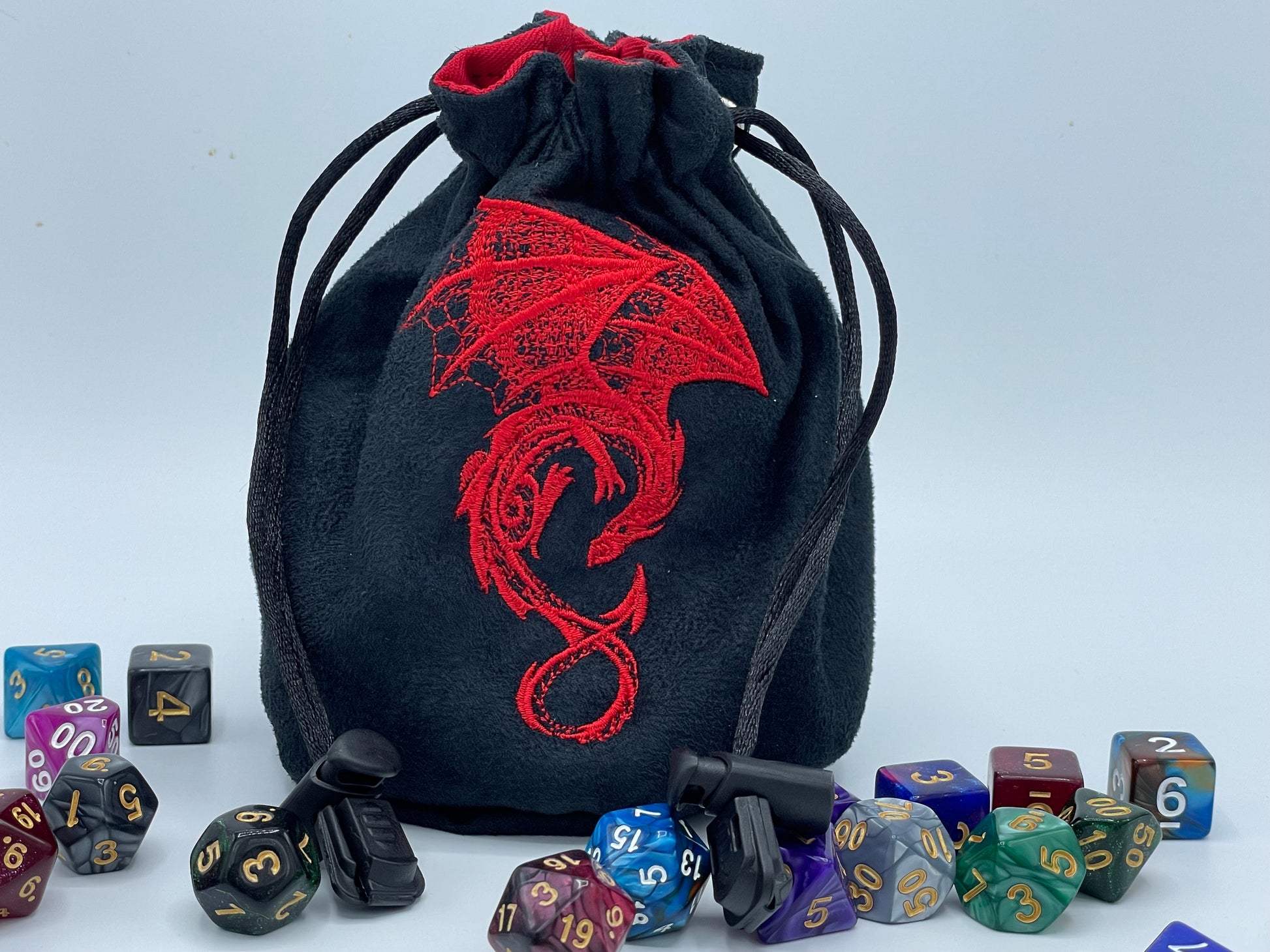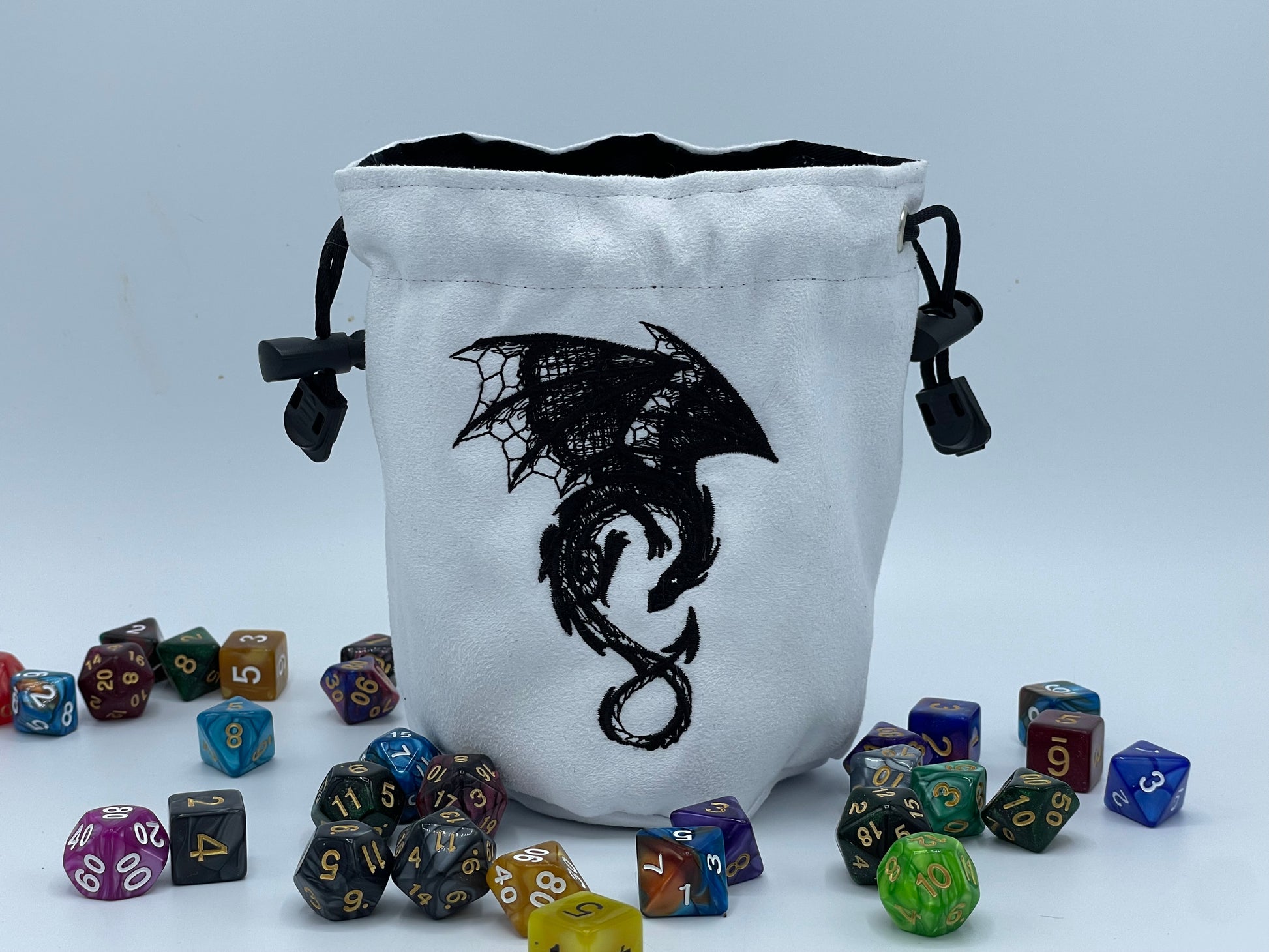Elevate your gaming experience with this Dragon Embroidered Dice Bag, featuring intricate lace dragon designs that add a touch of fantasy to your DnD sessions. Crafted to securely hold your dice, this bag combines style and practicality. Available in any color, it lets you personalize your gaming gear while keeping your dice organized and ready for adventure.